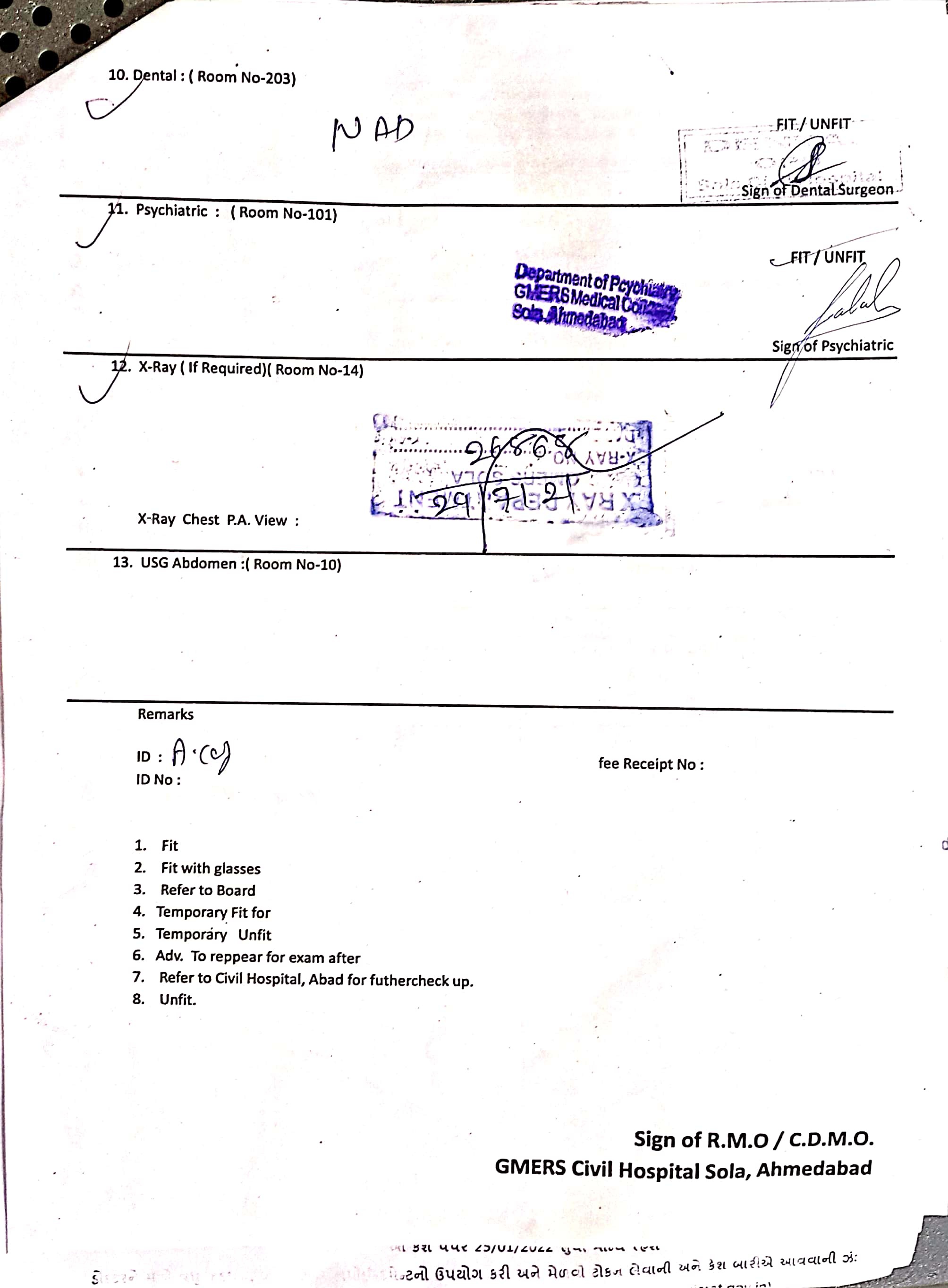 Certificate of medical fitness (to be deposited a t the time of joining) to be obtained only from gazetted government medical officer/medical officer of a government undertaking... .. Signature of government medical officer /civil surgeon / staff surgeon/authorized medical attendant/registered